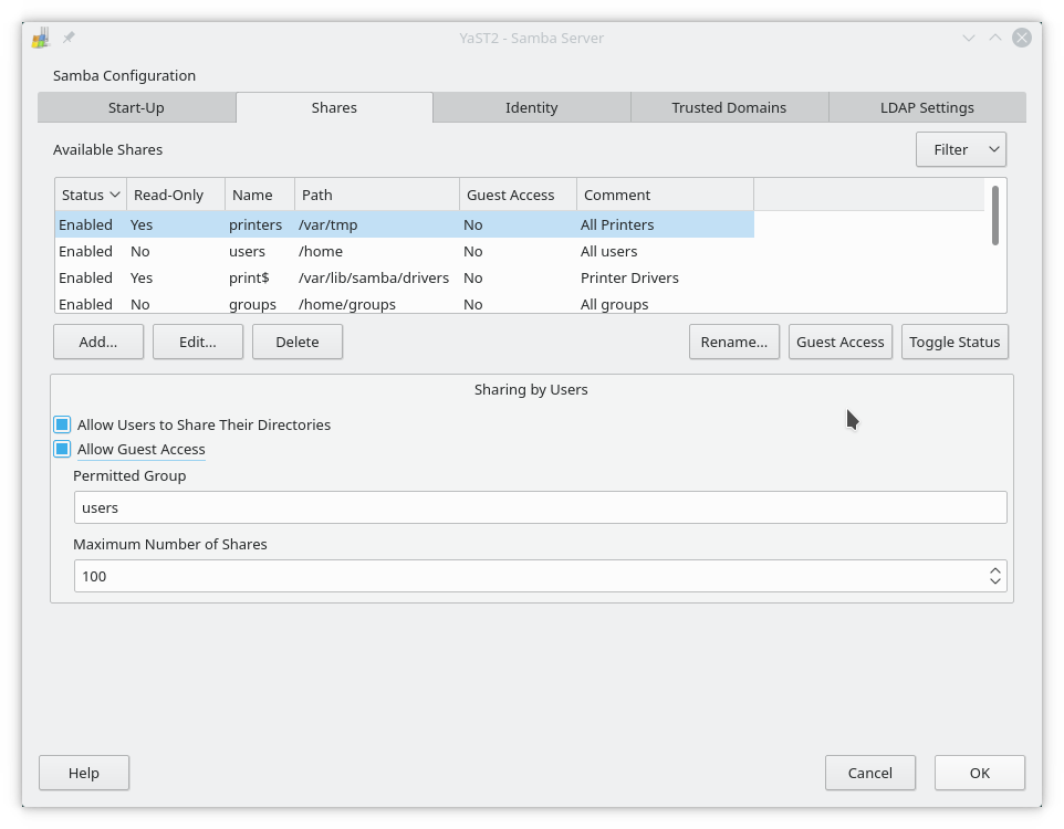 为了在本地网络中与 MS Windows 计算机共享资源,使用了 Samba 服务。